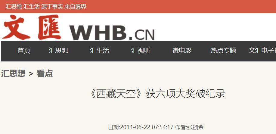 《〈西藏天空〉获六项大奖破纪录》(上观新闻)